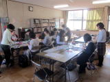 自由遊びが終わった後、みかん、ももさんとたんぽぽさんはなにやら真剣に先生の話を聞いていました。