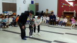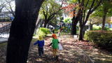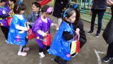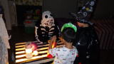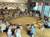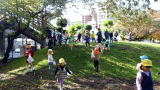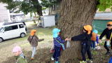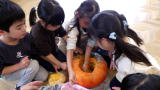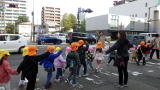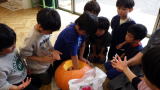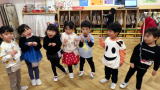 さて、ホールに移動しての誕生会ではいつものお楽しみインタビュー!大きくなったら?の質問では「モデル」「自衛隊」などかっこいい夢がたくさん。小さいころから夢があるなんて素敵だなとしみじみとしてしまいました。今年はお家の方にもインタビューをしていますよ。お子さんの好きなところは?という質問に「笑顔いっぱいで優しいところ」「ママと結婚する!と言ってくれる!」などたくさん教えてくれました。それを聞く子どもたちのニコニコな表情もまた見どころです!そして今日のお楽しみはハロウィーンお引越しゲーム!みかんさんは先生と、ももさんはたんぽぽ・すみれさんとペアを組んでかぼちゃやおばけ、コウモリチームに分かれていざ挑戦!難しかったのがペアで動いて2つ並んだ椅子を探すこと。空いている椅子が1つだけだとペアで座れないんです!だから、すでに座った人たちは1つずつ座るところを詰めて、詰めて、詰めて…空いたところに素早く座るペアが勝ち!残念ながら座れなくて合わせて3回鬼になったペアは、ハロウィーンものまね!かわいい黒猫になって「にゃん!」としたり翼を広げてコウモリになったりとこれまた可愛かったです。今日もカレーをおなかいーっぱい食べて、大満足のみんなでした♪