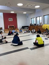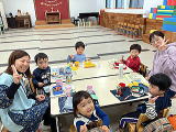 雲が1つもない綺麗な青空が広がった秋晴れの今日、幼稚園では誕生会が行われました。運動会があったので久しぶりの誕生会でしたね。「やったー!明日はカレーだ!」「誕生会楽しみ〜」と昨日からわくわくな子どもたち。10月生まれの4人のお友だちのお祝いをしましたよ。今日はおじいちゃんおばあちゃんやお父さんも一緒に誕生会に参加してくれるご家庭もあって、たくさんの人と特別な日を過ごすことができて見ている私たちも嬉しい気持ちになりました。教会では園長先生が新しいお友だちを紹介してくれました。その名はひつじの“げんちゃん”!以前、司祭様が礼拝の時にお話ししてくれた「迷子のげんちゃん」の話。みんなこの話が大好きで覚えているんです。そうしたら、司祭様のご家族の方がかわいいひつじを作ってくださったんです!かわいいげんちゃん、幼稚園の廊下に暮らしていますのでぜひ見に来てくださいね!