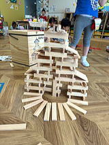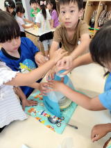 先生からのプレゼントは、クイズ大会!ポケットクイズマンが登場して、楽しいクイズを色々と出してくれます。簡単ですぐに答えられるようなものもあれば、難しくてなかなか答えが出ないものも。悩んだり、すぐにひらめいたりしながら「はいはいはいはい!!」と、みーんなが手をあげて、にぎやかで楽しいクイズ大会になりました。