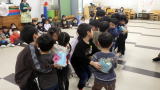 お楽しみはまだまだ。みんな大好きスキップじゃんけん大会!今日も2チームに分かれて対決。先生たちも全員参戦です!自分のチームが勝つたびに「やったー!」、負けるたびに「あー…」とどんどん気持ちがこもっていきます。2回戦行い1対1の引き分け!どっちも勝ち!で今日のスキップじゃんけんは幕を閉じました。