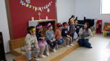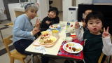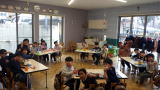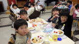 そしてそして今日は給食もスペシャル!ホールでみーんなで食べました。先生たちも給食の先生たちも。からあげやポテト、いちごの乗ったケーキと大好きな物だらけのメニュー。おかわりもいっぱいして大満足でした。