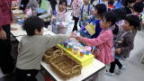 楽しい時間はあっという間。「蛍の光」が聞こえてきて、いよいよ閉店時間です。商品がなくなったお店もたくさんありあました。みんな頑張って準備したものね〜!商品がからっぽになったショッピングセンターはなんだかちょっと寂しかったです。「おかしけん」と引き換えたのは、ヤクルトとうまい棒。片付けまで終わった後に、楽しかったね!とかんぱ〜い!して頂きました。
