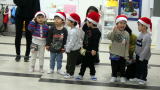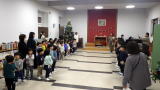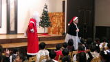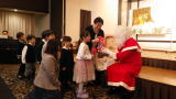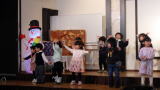 さあ、着替えを済ませて祝会です!会場で待っていてくれたみかん、もも、たんぽぽさんもウキウキでしたね。一番小さいみかんさんのダンスはとってもかわいい!!みーんなの目がハートになっていたのではないでしょうか。ももさんの歌もかわいかった〜!ダンスを踊った時がとても楽しそうで、見ている人も楽しい気持ちになりました。すみれさんのハンドベル。短い期間で準備したので実は数回しかやっていないのです。取り組むことが大事、を見てもらいました。たんぽぽさんは長い劇をよくがんばりました!セリフを覚えて、動くタイミングを覚えて、演じる楽しそうな子どもたちの雰囲気がまた、楽しい劇のスパイスになったように思います。そして盛り上がったのは、サンタさん登場ですね!子どもたちの嬉しそうな声と、サンタさんでウキウキしながらのダンスもかわいかったです。