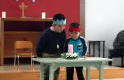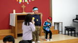 | 今日は1月生まれのお誕生日会でした。2人のお友だちのお祝いです。園庭は雪がたくさん、おまけに寒くてツルツル。安全な移動方法をあれこれ考えて、職員室の非常口から教会に行くことにしました。初めてのことだったのですが、慎重に上手に行けた子どもたちです。教会でみんなでお祝いした後は、ホールでの祝会です!これまで誕生会をずっと待っていた2人の、誕生会始まりのダンスはとってもとってもかわいかったです。インタビューも、2人とも上手に答えることができました。将来なりたいものは、幼稚園の先生に、警察と消防車!どんな大人になるのかな〜楽しみ楽しみ。
