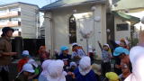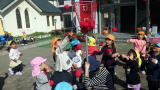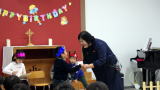雲が1つもない綺麗な青空が広がった秋晴れの今日、幼稚園では誕生会が行われました。運動会があったので久しぶりの誕生会でしたね。「やったー!明日はカレーだ!」「誕生会楽しみ〜」と昨日からわくわくな子どもたち。10月生まれの4人のお友だちのお祝いをしましたよ。今日はおじいちゃんおばあちゃんやお父さんも一緒に誕生会に参加してくれるご家庭もあって、たくさんの人と特別な日を過ごすことができて見ている私たちも嬉しい気持ちになりました。教会では園長先生が新しいお友だちを紹介してくれました。その名はひつじの“げんちゃん”!以前、司祭様が礼拝の時にお話ししてくれた「迷子のげんちゃん」の話。みんなこの話が大好きで覚えているんです。そうしたら、司祭様のご家族の方がかわいいひつじを作ってくださったんです!かわいいげんちゃん、幼稚園の廊下に暮らしていますのでぜひ見に来てくださいね!