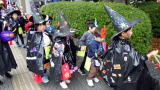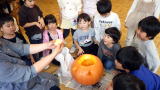 さて、ホールに移動しての誕生会ではいつものお楽しみインタビュー!大きくなったら?の質問では「モデル」「自衛隊」などかっこいい夢がたくさん。小さいころから夢があるなんて素敵だなとしみじみとしてしまいました。今年はお家の方にもインタビューをしていますよ。お子さんの好きなところは?という質問に「笑顔いっぱいで優しいところ」「ママと結婚する!と言ってくれる!」などたくさん教えてくれました。それを聞く子どもたちのニコニコな表情もまた見どころです!そして今日のお楽しみはハロウィーンお引越しゲーム!みかんさんは先生と、ももさんはたんぽぽ・すみれさんとペアを組んでかぼちゃやおばけ、コウモリチームに分かれていざ挑戦!難しかったのがペアで動いて2つ並んだ椅子を探すこと。空いている椅子が1つだけだとペアで座れないんです!だから、すでに座った人たちは1つずつ座るところを詰めて、詰めて、詰めて…空いたところに素早く座るペアが勝ち!残念ながら座れなくて合わせて3回鬼になったペアは、ハロウィーンものまね!かわいい黒猫になって「にゃん!」としたり翼を広げてコウモリになったりとこれまた可愛かったです。今日もカレーをおなかいーっぱい食べて、大満足のみんなでした♪