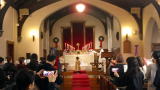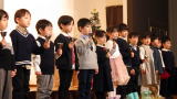 聖劇礼拝が始まり、すみれ組の子どもたちが入堂して歩く姿が凛々しくて。頼もしくもあり、うれしくもあり、そんな気持ちで見つめていました。これまで準備してきた通り、一人一人が自分の役割を自信をもって果たしていました。遠くまで気持ちを届けるように話してね、丁寧に歌おうね、と普段やってきたことをみんなしっかりと覚えていました。素敵な聖劇で、みんながそれぞれ輝いていて、本当に本当に感動しました。最後に「みつかいのしゅなるおおきみ」を歌いながら幼稚園まで戻ってきたときのやり切った顔。にこにこして褒めてもらうのを待つ顔もとってもかわいかったです。そしてみんなで心を落ち着かせて最後にお祈りをし、終わりです。