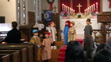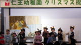 さあ、着替えを済ませて祝会です!会場で待っていてくれたみかん、もも、たんぽぽさんもウキウキでしたね。一番小さいみかんさんのダンスはとってもかわいい!!みーんなの目がハートになっていたのではないでしょうか。ももさんの歌もかわいかった〜!ダンスを踊った時がとても楽しそうで、見ている人も楽しい気持ちになりました。すみれさんのハンドベル。短い期間で準備したので実は数回しかやっていないのです。取り組むことが大事、を見てもらいました。たんぽぽさんは長い劇をよくがんばりました!セリフを覚えて、動くタイミングを覚えて、演じる楽しそうな子どもたちの雰囲気がまた、楽しい劇のスパイスになったように思います。そして盛り上がったのは、サンタさん登場ですね!子どもたちの嬉しそうな声と、サンタさんでウキウキしながらのダンスもかわいかったです。