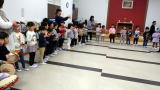 | 今日は1月生まれのお誕生日会でした。2人のお友だちのお祝いです。園庭は雪がたくさん、おまけに寒くてツルツル。安全な移動方法をあれこれ考えて、職員室の非常口から教会に行くことにしました。初めてのことだったのですが、慎重に上手に行けた子どもたちです。教会でみんなでお祝いした後は、ホールでの祝会です!これまで誕生会をずっと待っていた2人の、誕生会始まりのダンスはとってもとってもかわいかったです。インタビューも、2人とも上手に答えることができました。将来なりたいものは、幼稚園の先生に、警察と消防車!どんな大人になるのかな〜楽しみ楽しみ。